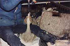 several pounds of feed into each bird’s stomach.